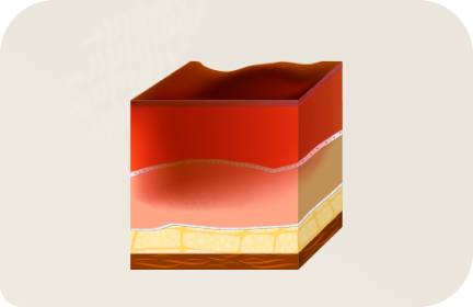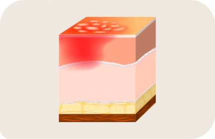 표피에만 손상을 입은 상태로 약간의 열기가 있고 통증과 부종은 있으나 물집은 없는 상태입니다. 대부분 흉터 없이 치유됩니다.